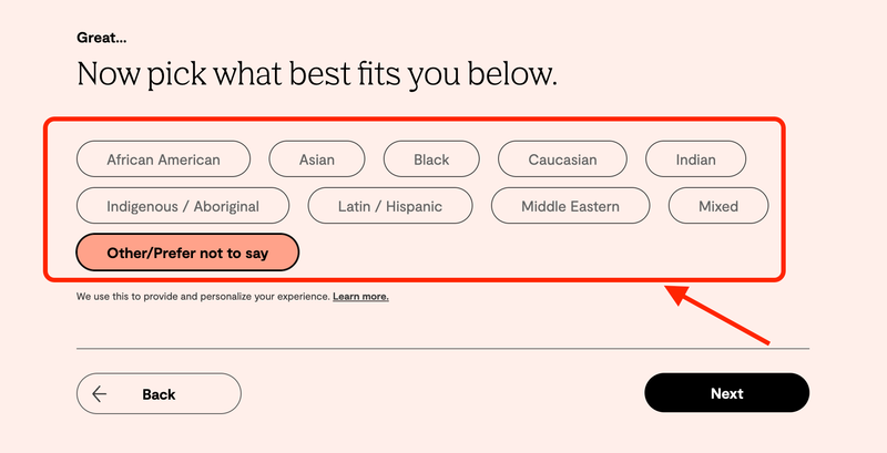 Select the option that best describes your background on Plenty of Fish, then click “Next” to proceed.
