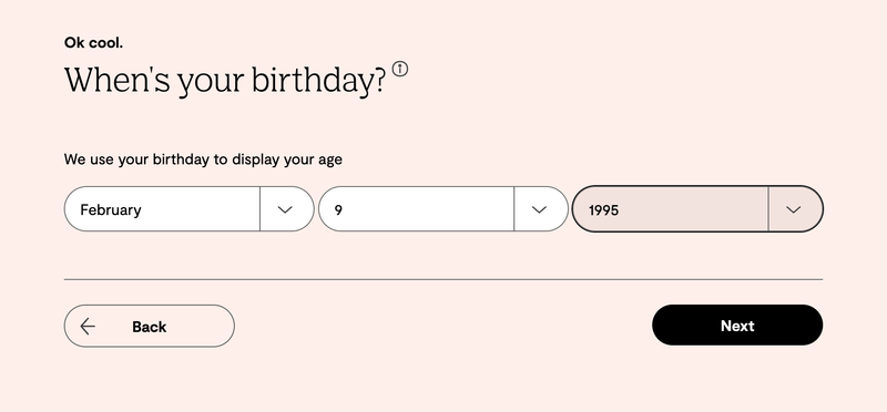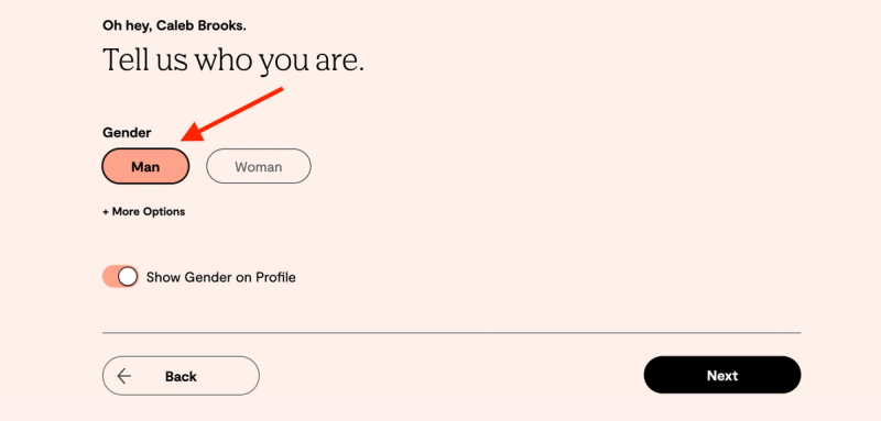 Choose your gender. You can also decide whether you want to show your gender on your profile. Then, click “Next” to continue.