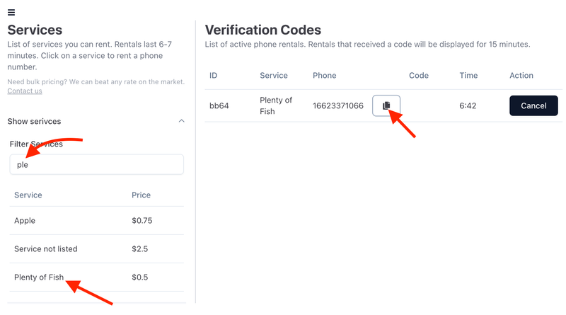 Search for Plenty of Fish and click on it from the search results. You will almost instantly see a US phone number assigned for your Plenty of Fish account verification.