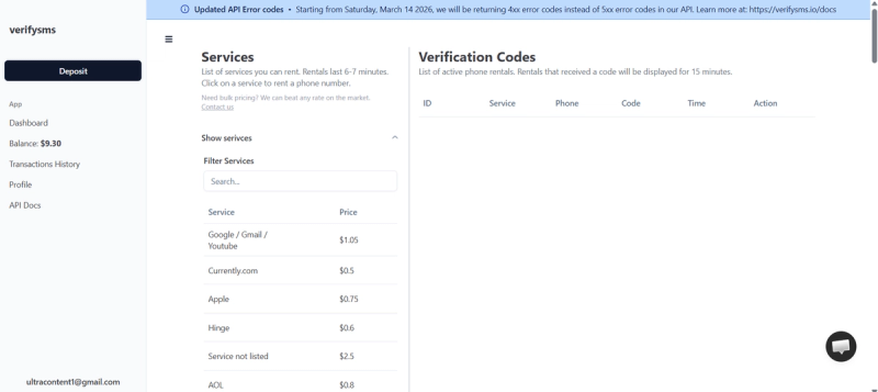Open your browser and go to verifysms. Click the get started button as shown in the figure. The form is quick – just enter an email address and choose a password. No long questions, no extra details. Once you confirm your email, you land straight on the dashboard.
