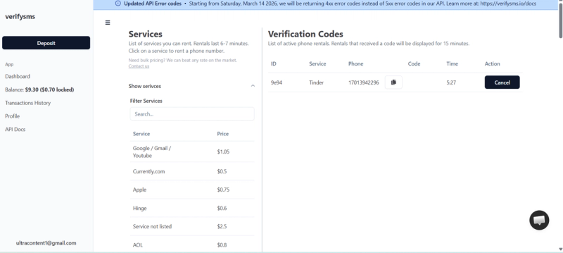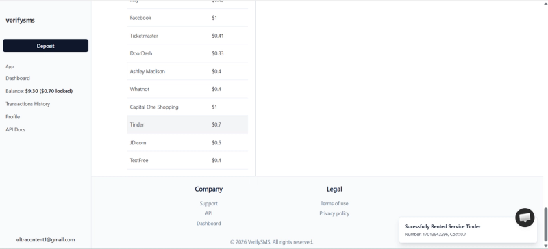 The easiest way right now is through VerifySMS. You create an account, top up with as little as $10, and buy a virtual number specifically for Tinder. Each Tinder account here costs you just 0.7 dollar, and the verification code stays available for 15 minutes. That is more than enough time to finish the sign-up. Below we’ll walk you through every single step so you can open your new profile today without any stress.